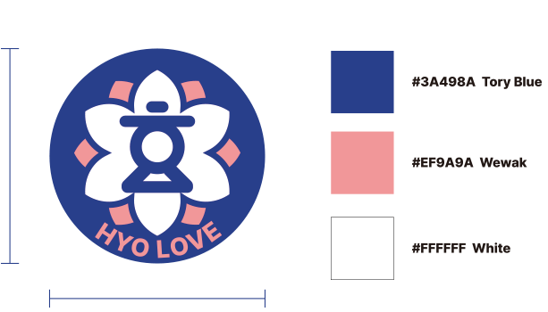 꽃 모양 속에 ‘효’ 글자와 HYO LOVE가 함께 들어가 있어서, 효의 정신과 사랑, 나눔을 동시에 담아내고 있습니다.